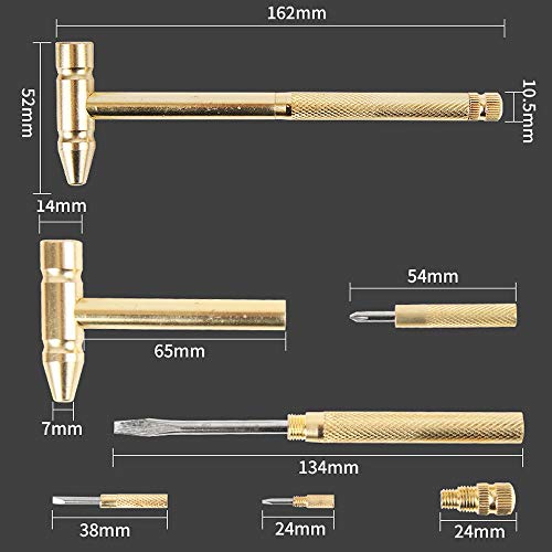 ✨Package included: Multi-function copper hammer. One Dual-purpose copper hammer, and 4 Screwdrivers inside the take care of which with 1 piece small Phillips screwdriver, 3 pieces Slotted screwdriver.