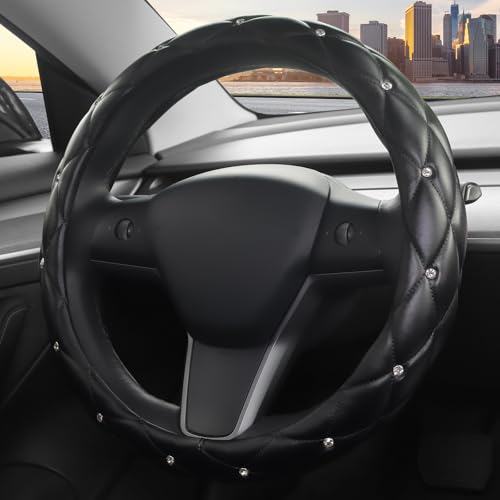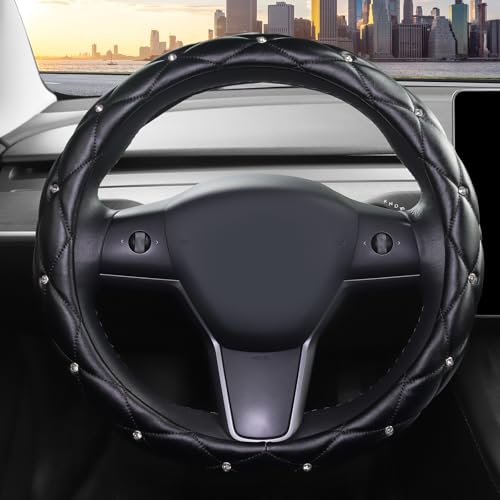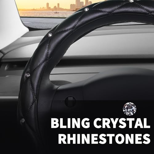 High Quality Material : Our leather bling steering wheel cover is made of high quality leather and rhinestones. The soft leather material not only protects your steering wheel, but also gives you excellent touch and relieves driving fatigue.