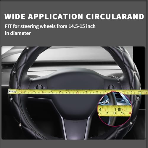 Specification: Diamond Leather Anti-Slip Steering Wheel Cover with Crystal Rhinestones for Women and Girl, Universal Car Bling Steering Wheel Cover Protector Fit 15 inches – Black