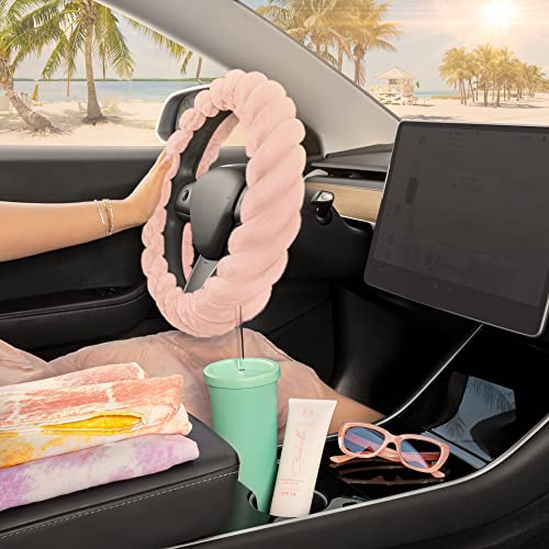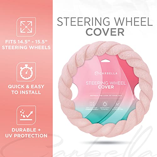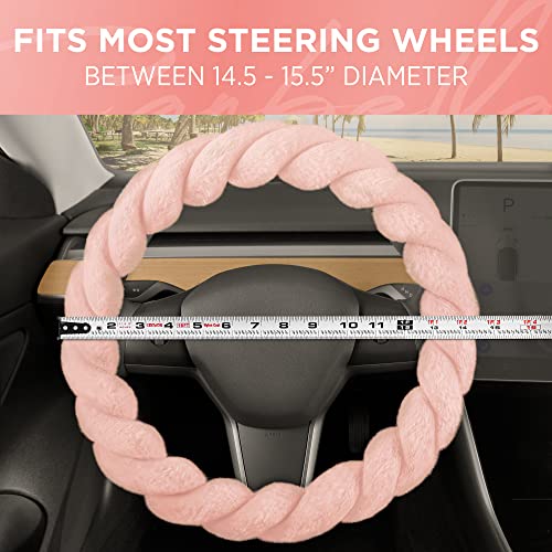 Twisted Fur Soft Pink Steering Wheel Cover, Standard 15 Inch Size Fits Most Vehicles, Fuzzy Fluffy Car Steering Cover with Soft Faux Fur Touch, Car Accessories for Women