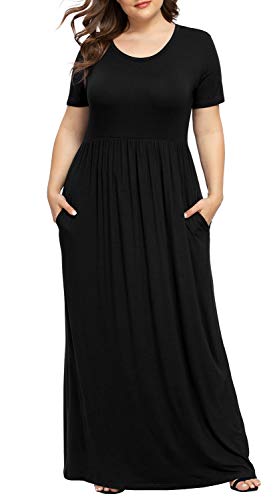 Specification: LONGYUAN Women’s Plus Size Maxi Dresses Summer Casual Short Sleeve 2024 Fahion Long Dress XL-6XL with Pockets