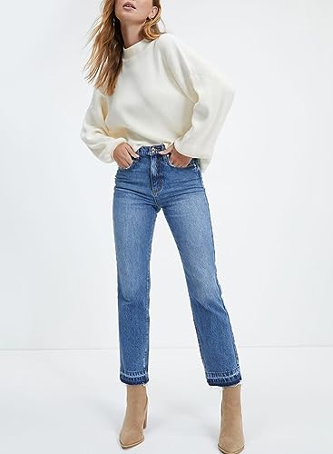 Astylish Womens High Waisted Straight Leg Ankle Jeans Casual Stretch Denim Pants