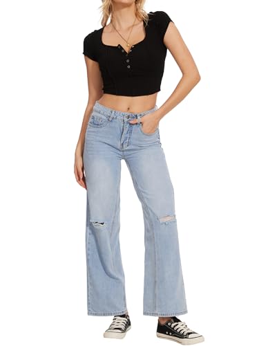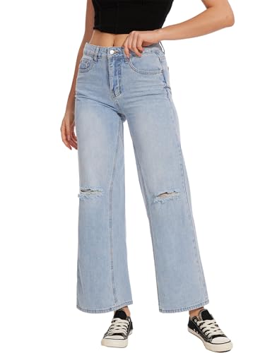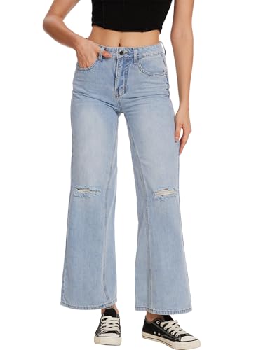 Beautiful Nomad Women’s Wide Leg Ripped Jeans Casual Straight Baggy Distressed Denim Pants