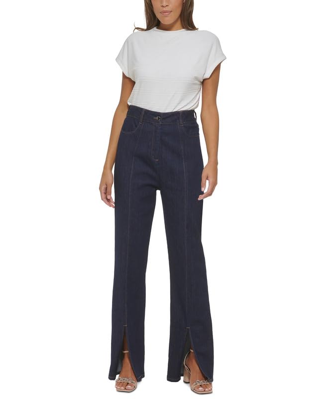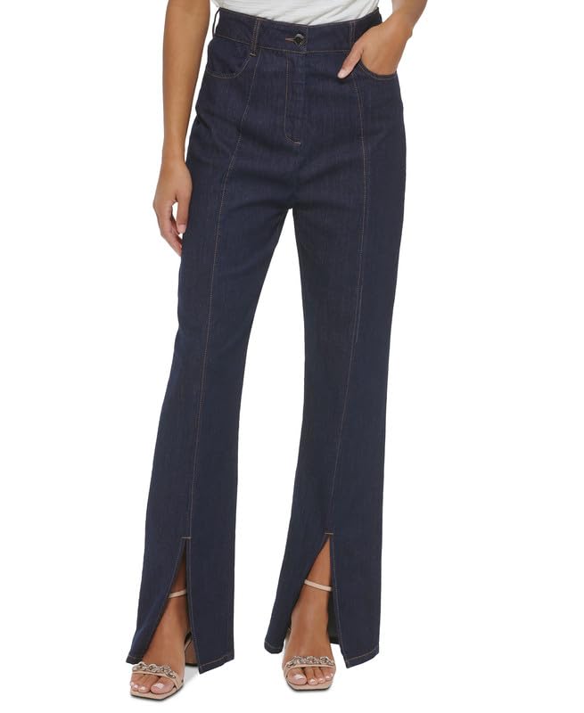 Calvin Klein Women’s Petite Split-Front Denim Pants (Dark Denim, 14P)