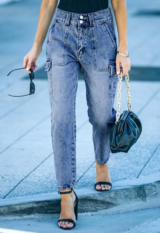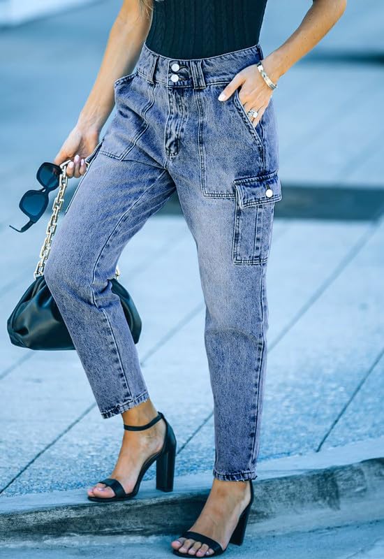 Cargo Jeans for Women Y2K High Waisted Jeans Stretchy Denim Pants