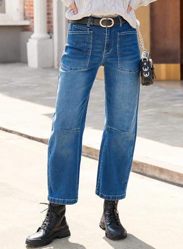 Specification: EVALESS Womens Baggy Barrel Jeans High Waisted Wide Leg Boyfriend Denim Ankle Pants
