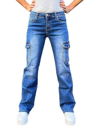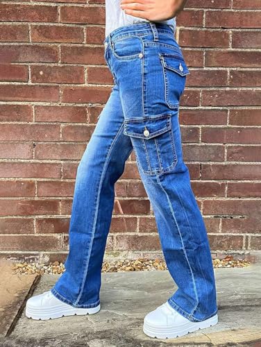 Specification: Flamingals Cargo Jeans for Women Mid Waist Straight Leg Jeans with Flat Pocket