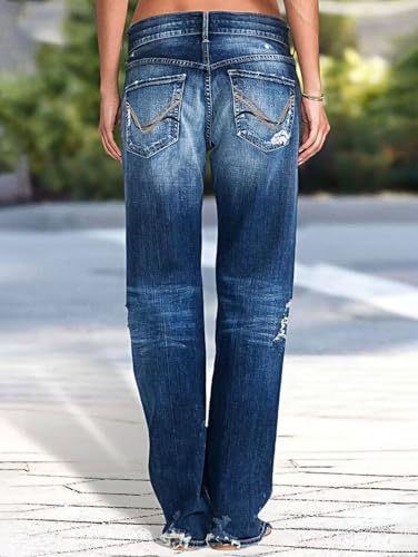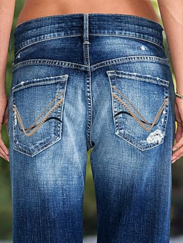 Specification: Flamingals Women’s Low Rise Straight Leg Jeans Stretchy Ripped Raw Hem Casual Denim Jeans