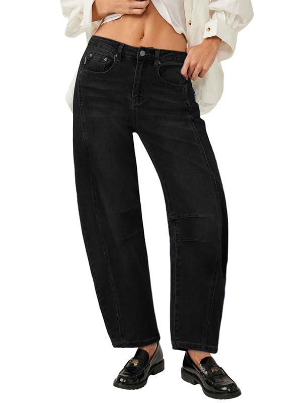 Specification: Genleck Barrel Jeans Women Wide Leg Cropped Jeans High Waisted Baggy Boyfriend Mom Denim Ankle Pants with Pockets