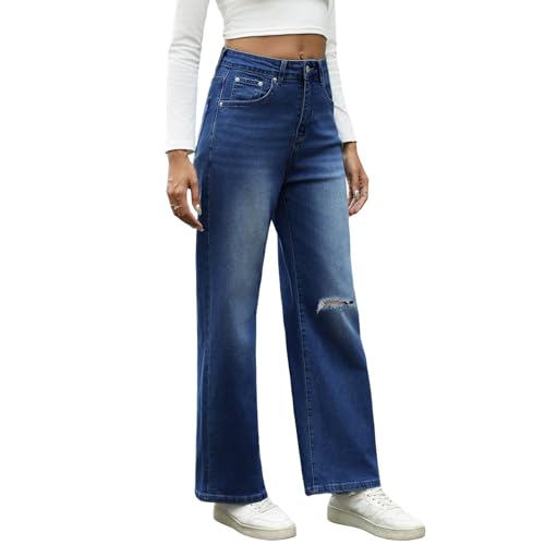 Genleck Women Loose Ripped Boyfriends Jeans High Waist Baggy Denim Pants Distressed Wide Leg Jeans Y2K