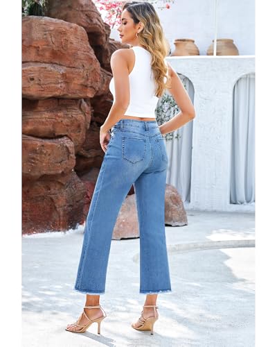 Specification: GRAPENT Capri Jeans for Women Trendy High Waisted Wide Leg Flare Button Fly Stretchy Denim Pants Raw Hem Cropped Jeans