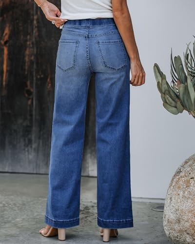 GRAPENT Pull On Womens Jeans Baggy Stretchy High Waisted Denim Wide Leg Trouser Pants Trendy Front Seam 90s Loose Jean