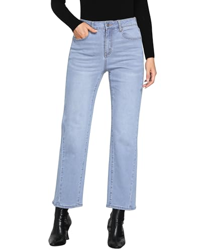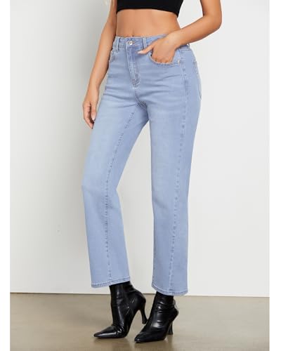 GRAPENT Straight Leg Jeans for Women High Waisted Trendy Ankle Length Forward Seams Stretchy Denim Pants Baggy Jeans
