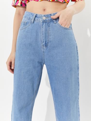Specification: High Rise Stretchable Wide Leg with Buttoned Closure Korean Style Ice Blue Jeans for Women