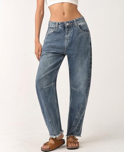 Specification: HOTIAN Womens Barrel Jeans Wide Leg Mid Waist Horseshoe Jeans Y2k Baggy Denim Pants with Pockets