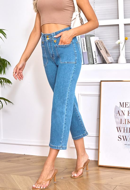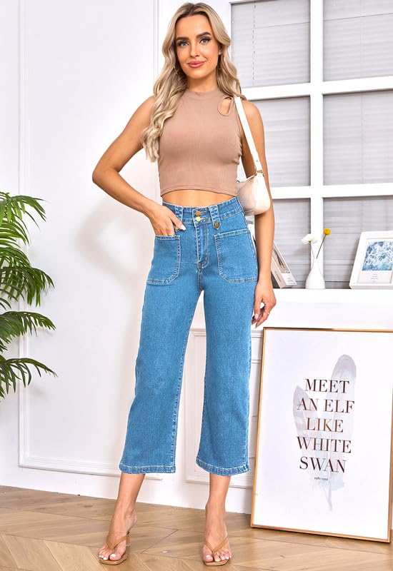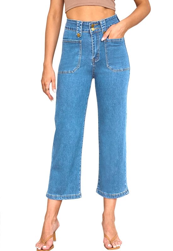 HUNGSON Women’s Wide Leg Jeans High Waisted Stretchy Straight Leg Jeans Loose Denim Pants with Pocket