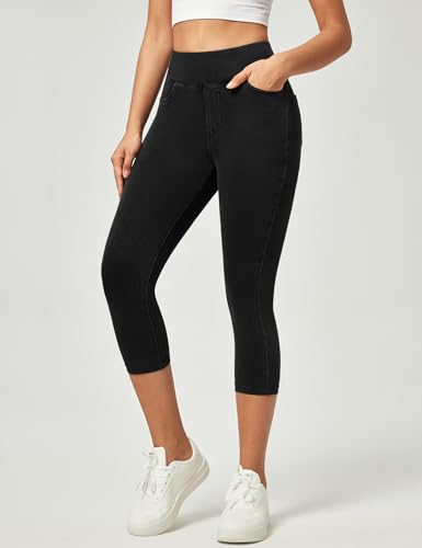 IUGA Pull On Capri Jeans for Women Stretchy Jean Capris High Waisted Cropped Jeggings Casual Denim Capri Pants with Pockets