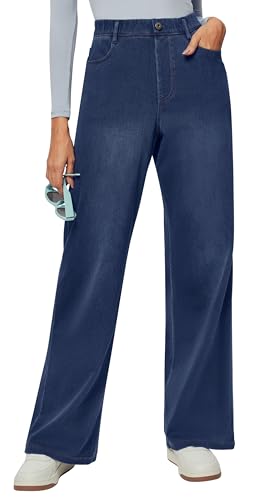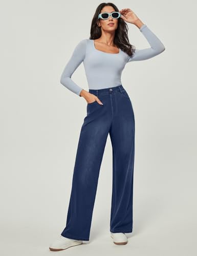 IUGA Wide Leg Jeans Woman Stretchy Pull On Baggy Jeans High Waisted Trendy Womens Jeans Straight Casual Denim Pants