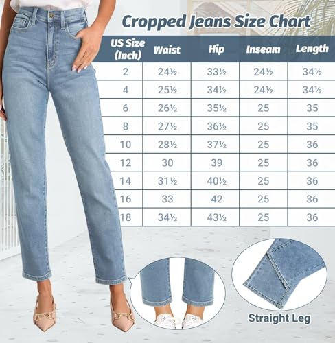 Specification: KDF Women’s Cropped Straight Leg Jeans – High Waisted Jeans for Women 7/8 Length Denim Pants with Crop Hem