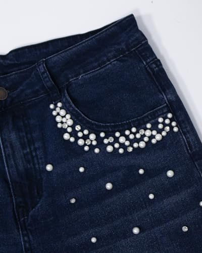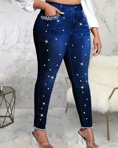 Specification: Ladyful Women’s Skinny Jeans Classic Mid Waist Stretchy Denim Pants with Pearls Rhinestones