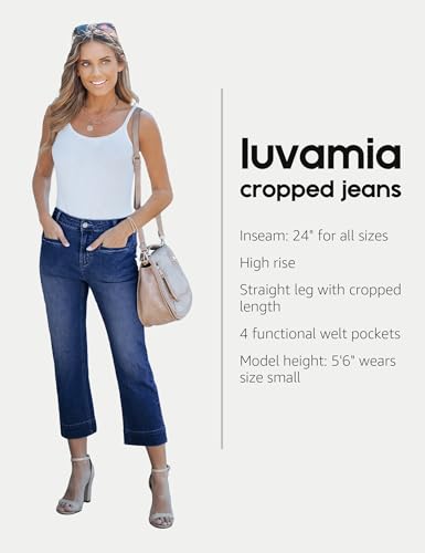 luvamia Capri Jeans for Women High Waisted Slim Straight Stretchy Denim Capris Pants Welt Pockets Casual Cropped Jeans