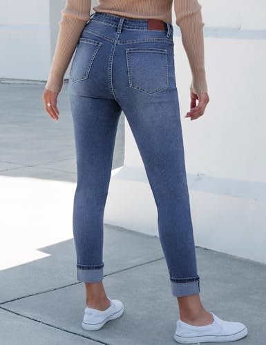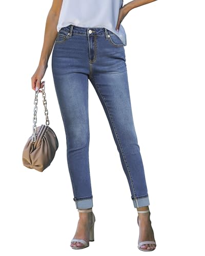 luvamia Skinny Jeans for Women Trendy High Waisted Fold Hem Slim Fit Stretchy Denim Pants Jeggings Jeans with Pockets