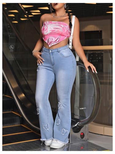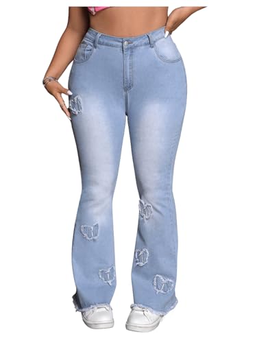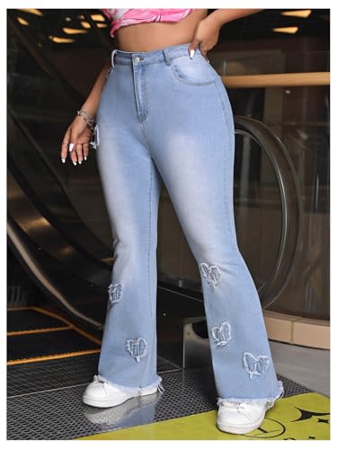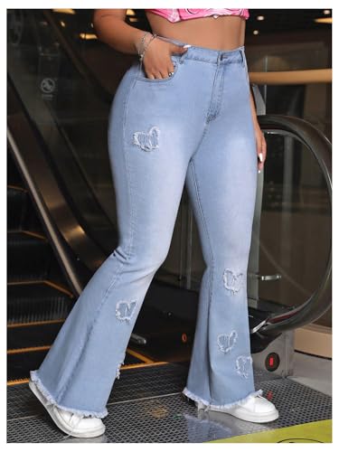 Specification: MakeMeChic Women’s Plus Size Ripped Raw Hem Jeans Pocket Bell Bottom Y2K Long Denim Pants