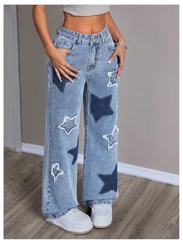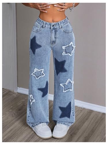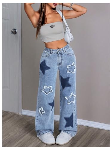 Specification: MakeMeChic Women’s Baggy Jeans Y2K Star Print Wide Leg Loose Boyfriend Jeans Denim Pants Trousers