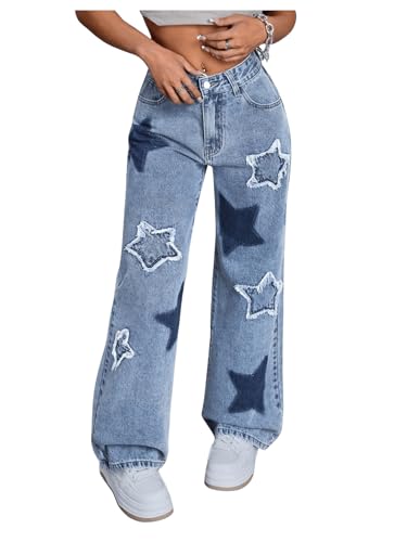 MakeMeChic Women’s Baggy Jeans Y2K Star Print Wide Leg Loose Boyfriend Jeans Denim Pants Trousers