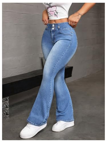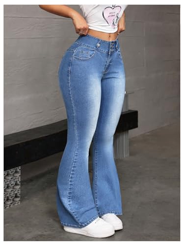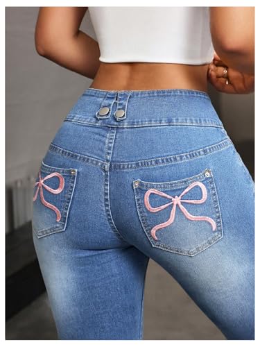 Specification: MakeMeChic Women’s Bow Embroidery Jeans Bell Bottom Skinny Y2K Denim Pants with Pocket