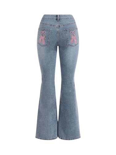 Specification: MakeMeChic Women’s Butterfly Embroidered Bell Bottom Flare Jeans Y2k Denim Pants
