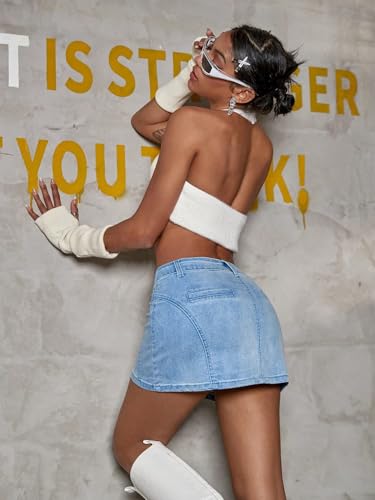 Specification: MakeMeChic Women’s Denim Skirt Y2K Flap Pocket Denim Skort Low Rise Mini Jean Skirt