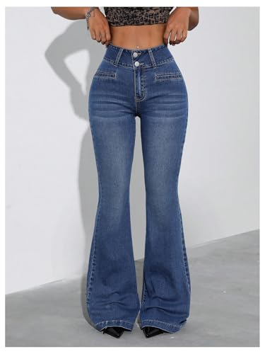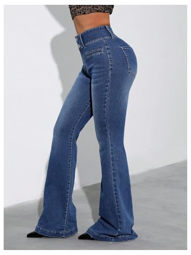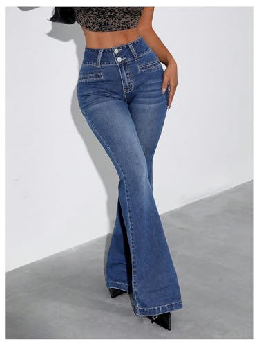 Specification: MakeMeChic Women’s High Waist Flare Bell Bottom Jeans Denim Pants Wide Leg Y2K Bootcut Jeans