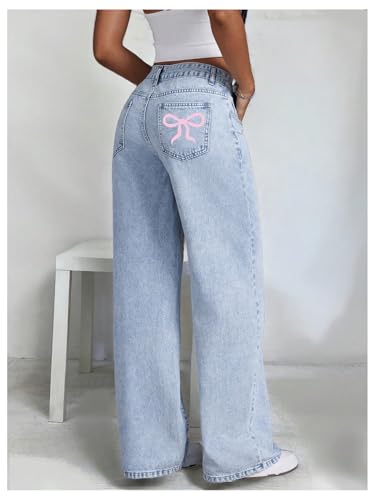 Milumia Women’s Bow Print Straight Leg Denim Pants Low Waisted Loose Fit Jeans