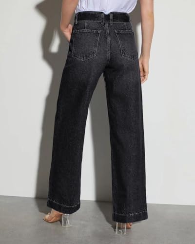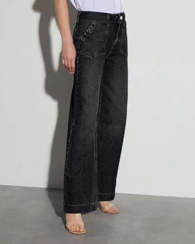 Necooer Womens Wide Leg Jeans Trendy Baggy Stretchy Boyfriend Jeans Casual Stretch Straight Leg Denim Pants