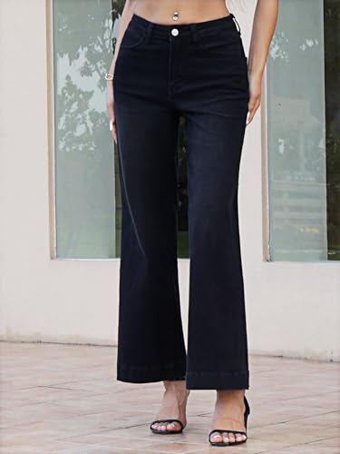 ONESO Flare Jeans for Women High Waist Wide Leg Womens Jeans Stretch Tummy Control Baggy Denim Pants Inseam 31″