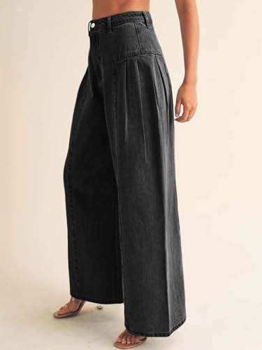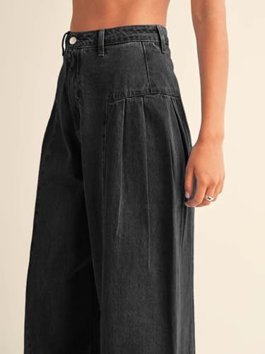 PLNOTME Womens Baggy High Waisted Jeans Loose Boyfriend Wide Leg Side Pleated Denim Pants
