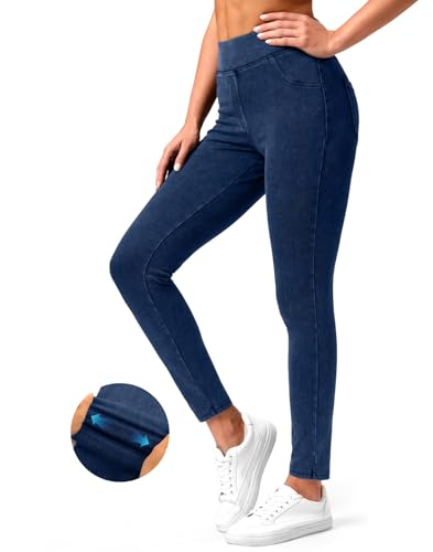 Rammus Jeggings Pull on Stretchy Jeans for Women High Waisted Skinny Jean Leggings Tummy Control Denim Pants with Pockets