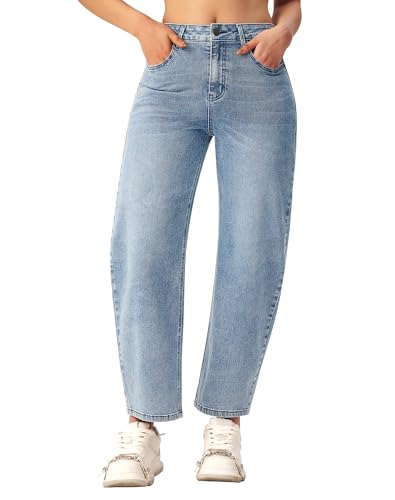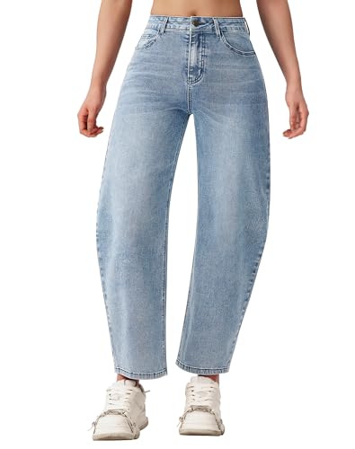 roswear Women’s Barrel Jeans High Waisted Wide Leg Cropped Jeans Stretchy Baggy Ankle Denim Pants