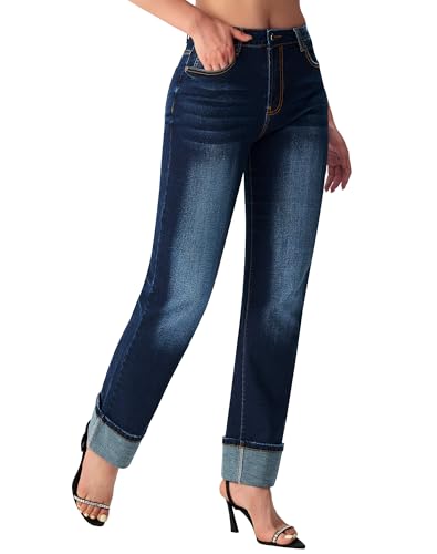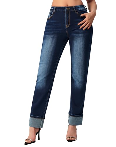 Specification: roswear Women’s Straight Leg Jeans High Waisted Boyfriend Stretchy Cuffed Denim Pants