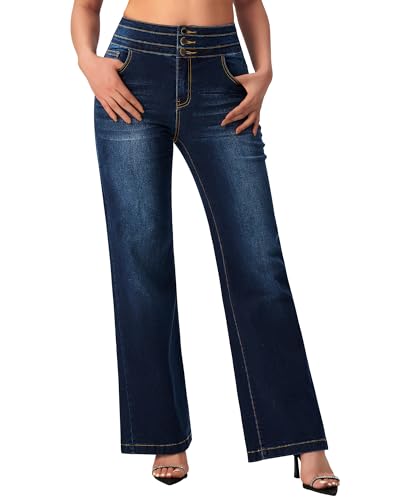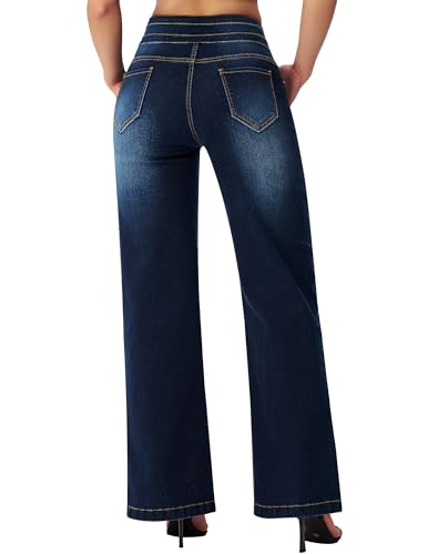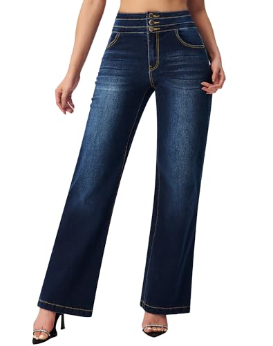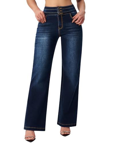 roswear Women’s Wide Leg Jeans Y2k Baggy Loose Trouser Jeans High Waisted Stretch Denim Pants