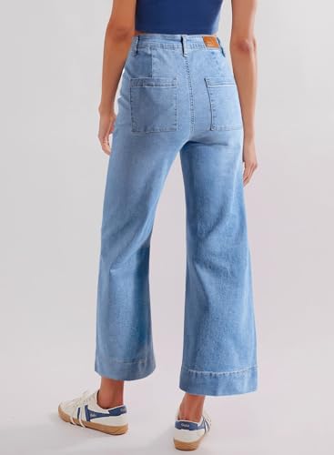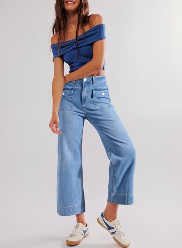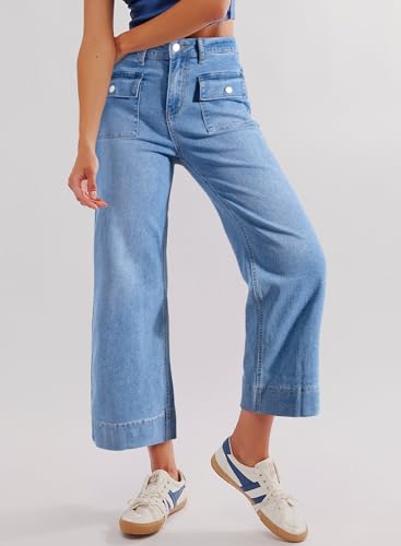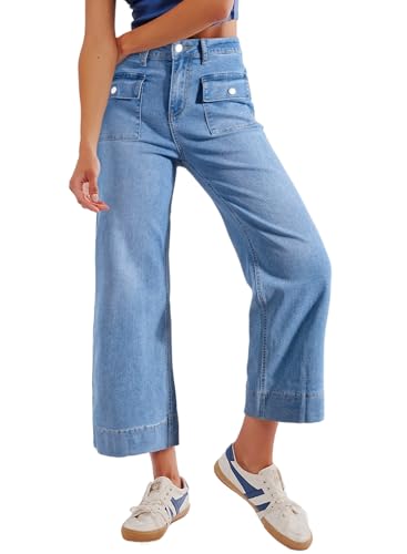 Specification: Sidefeel Women’s Wide Leg Jeans High Waisted Stretchy Straight Leg Denim Pants with Patch Pockets Front