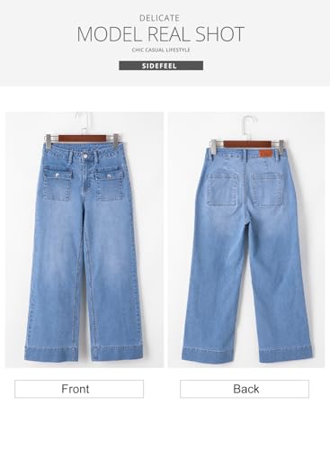 Sidefeel Women’s Wide Leg Jeans High Waisted Stretchy Straight Leg Denim Pants with Patch Pockets Front
