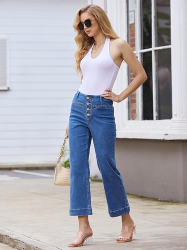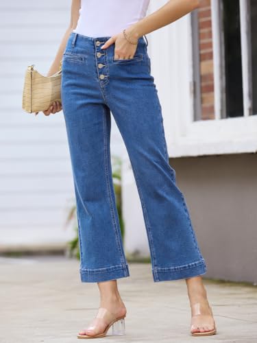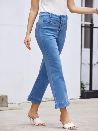 Straight Leg Jeans for Women Wide Leg Cropped Jeans Pants Baggy Flare Trouser Jeans Pockets