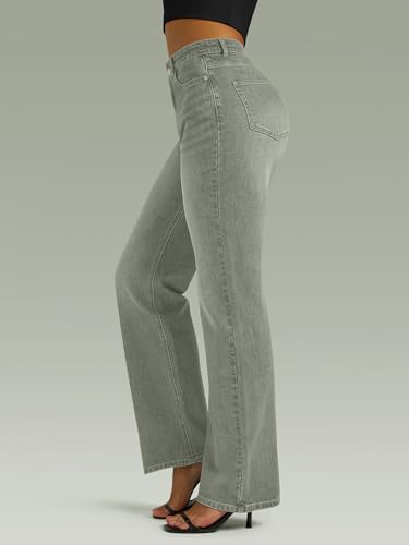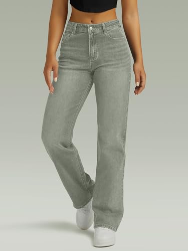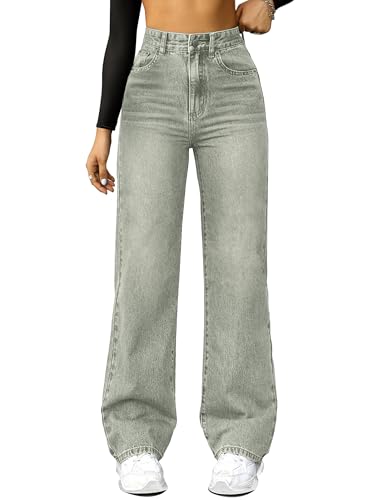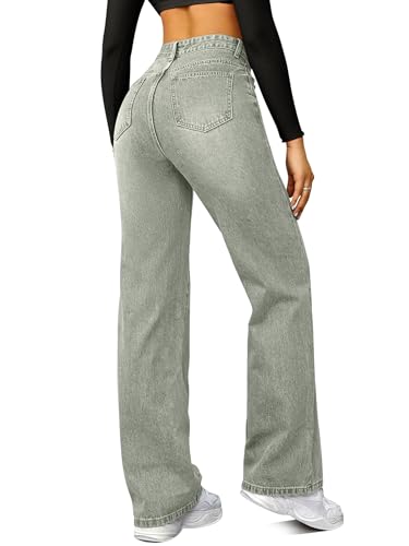 Straight Leg Jeans for Women,High Waisted Wide Leg Loose Microelastic Boyfried Denim Pants Light-Green