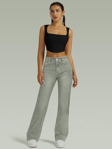 Specification: Straight Leg Jeans for Women,High Waisted Wide Leg Loose Microelastic Boyfried Denim Pants Light-Green