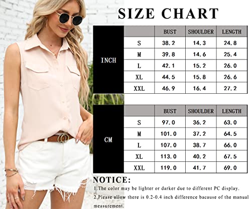 Veatzaer Women’s Solid Lapel Sleeveless Tank Tops Summer Button Down Shirts Office Ladies Shirts