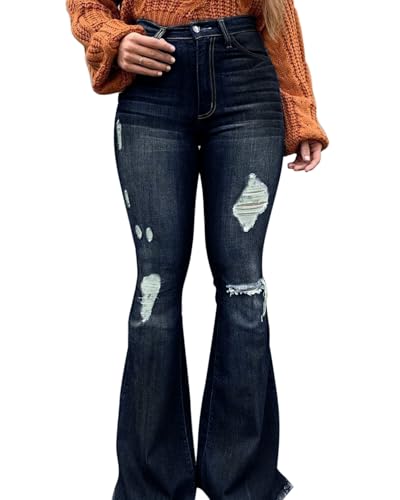 Vintage Bell Bottoms Flare Jeans for Women 90s High Waist Ripped Distressed Wide Leg High Rise Denim Pants