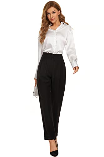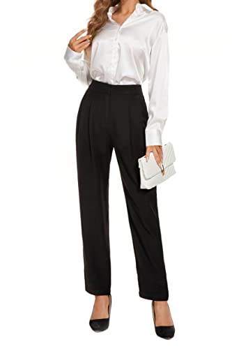 FUNYYZO Flowy Trousers Office Wide Leg Pants for Work Business Casual High Waisted Dress Pants