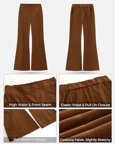 GRAPENT Flare Pants for Women Corduroy Pull On High Waisted Wide Leg Trouser Pants Stretch Bell Bottom Front Seam Slacks